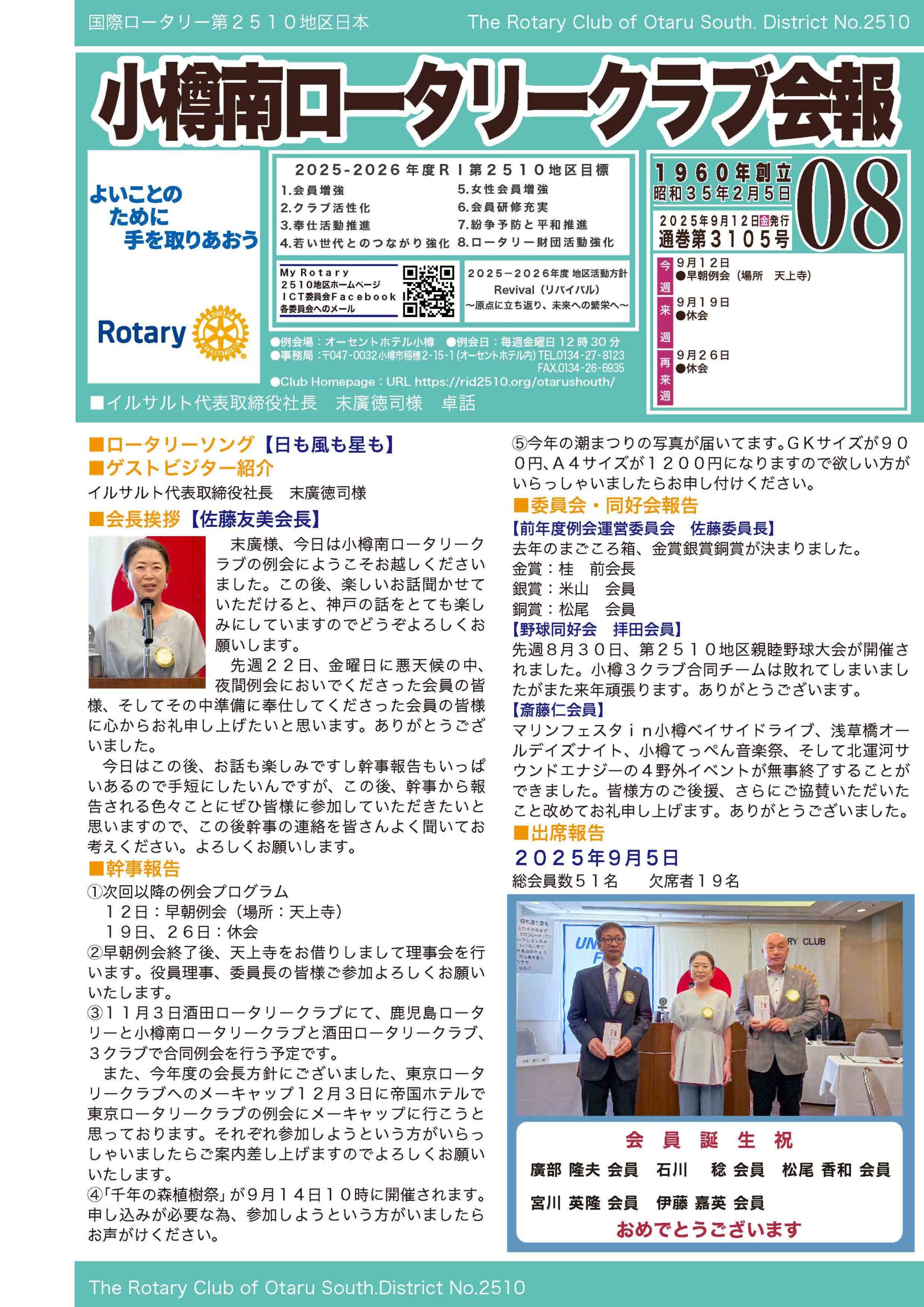 2025年9月12日会報08号 通巻第3105号
