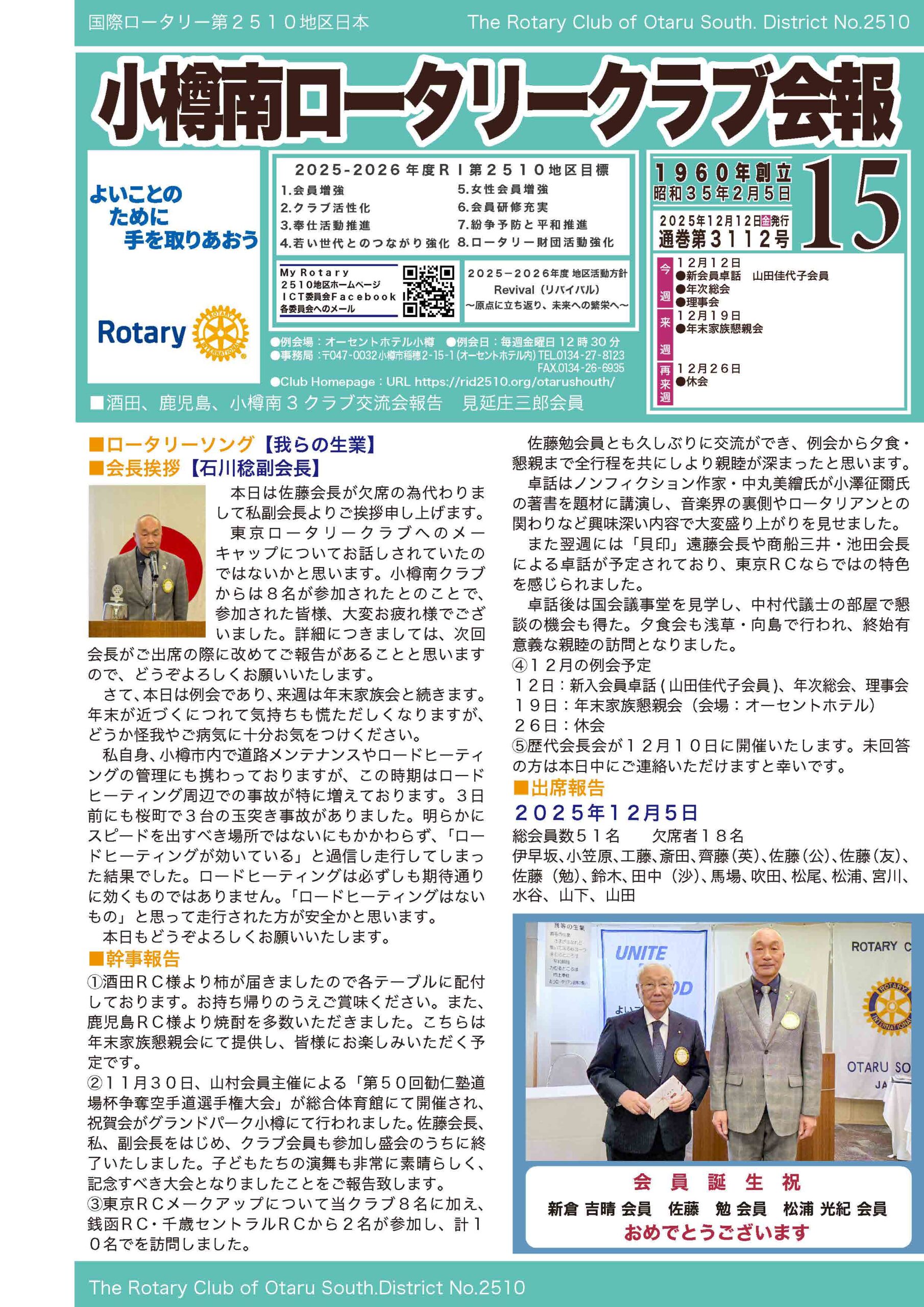 2025年12月12日会報15号 通巻第3112号
