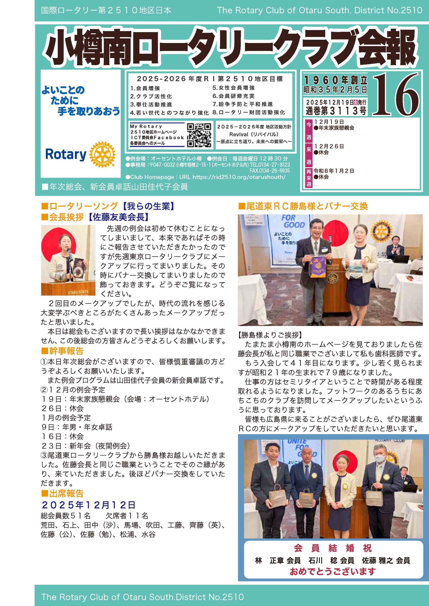 2025年12月19日会報16号 通巻第3113号