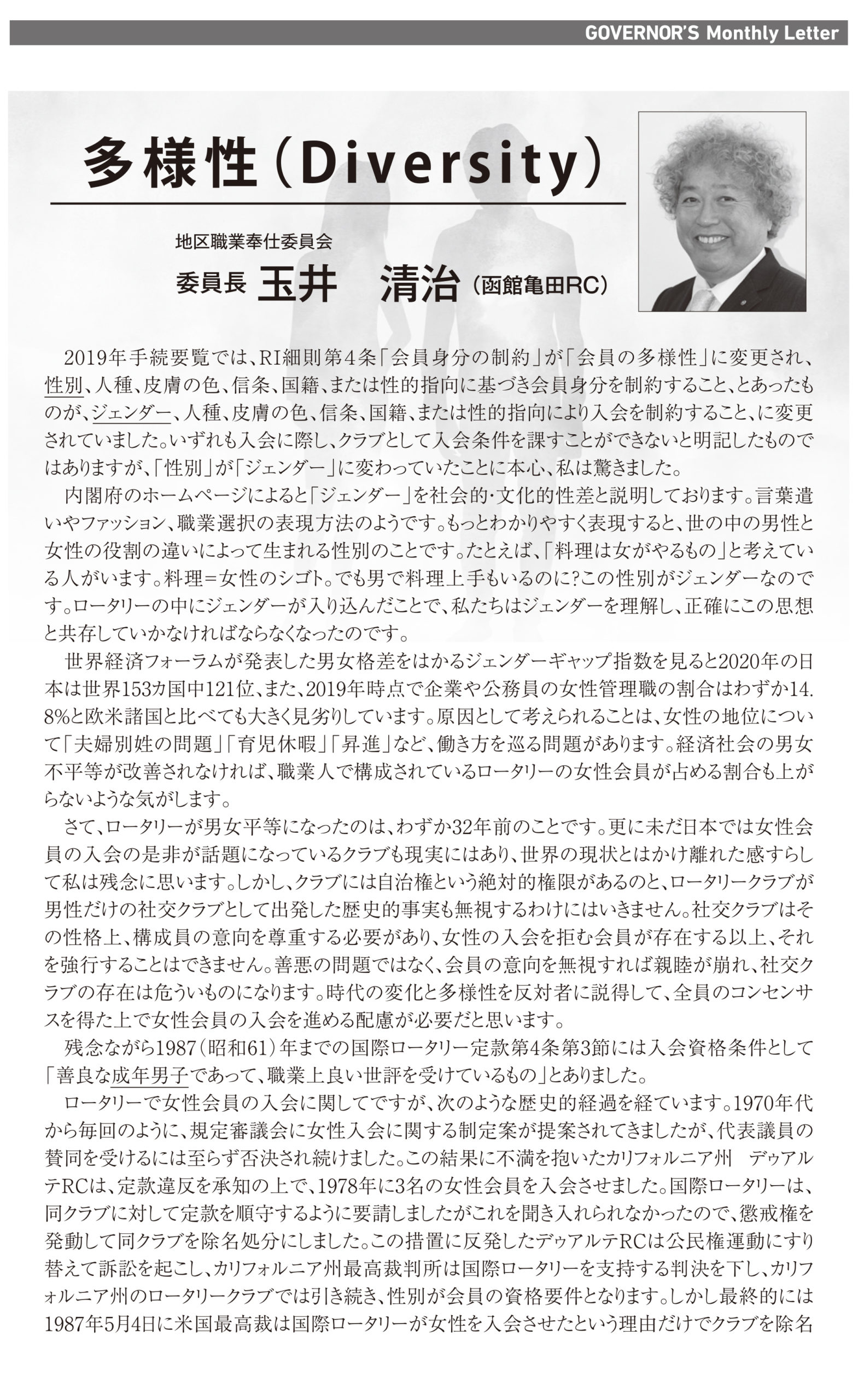 多様性 Diversity(ガバナー月信3月号)