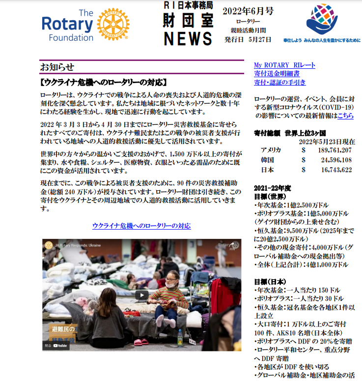 各クラブのロータリーの補助金、プログラムへの参加、寄付増進等にお役立ていただければ幸いです。