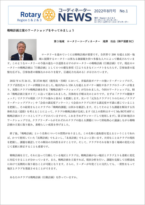 国際ロータリー日本事務局発行のコーディネーターニュース 2022年8月号が公開されました。