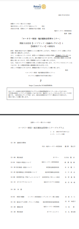 【重要8/28 ロータリー財団・地区補助金管理セミナー 開催方法変更】【ハイブリッド→全面オンライン】