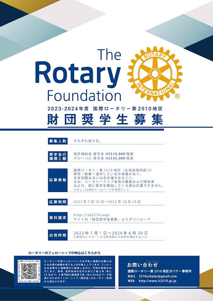 2023-2024年度 ロータリー財団奨学生 募集要項