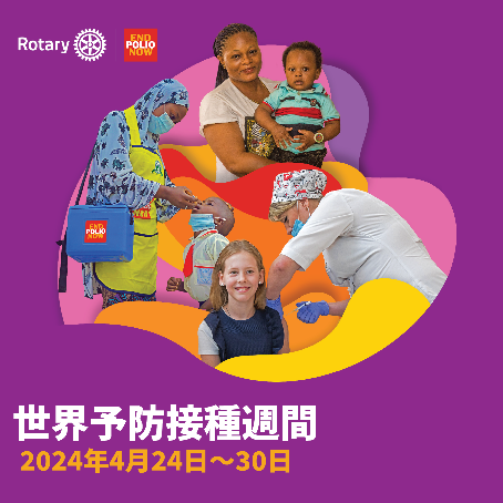 ロータリーと世界ポリオ根絶推進活動(GPEI)のパートナー団体は、身体まひを引き起こすポリオから子どもを守るための予防接種の重要性を強調するために、毎年のこの機会を活用しています。世界予防接種週間には、GPEIが1988年の設立以来、予防接種を通じてポリオの症例を99.9%以上削減してきたことを多くの人に伝え、予防接種の効果を示すことができます。